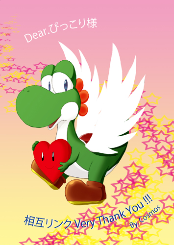 ヨッシーを描くとつい羽を描いてしまう癖が…。でも楽しく描かせて頂きましたっ。