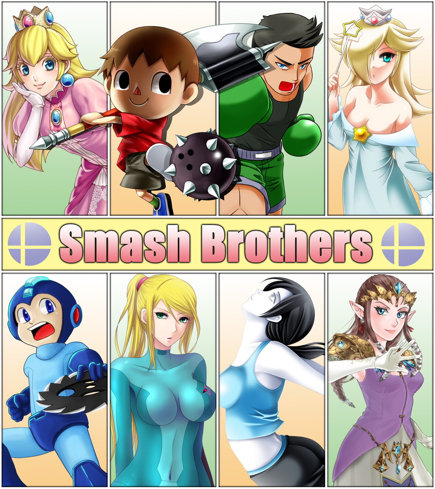 下段左から:LIN様(ロックマン)、くくあ様(サムス)、A-Z様(WiiFitトレーナー)、わさび様(ゼルダ)